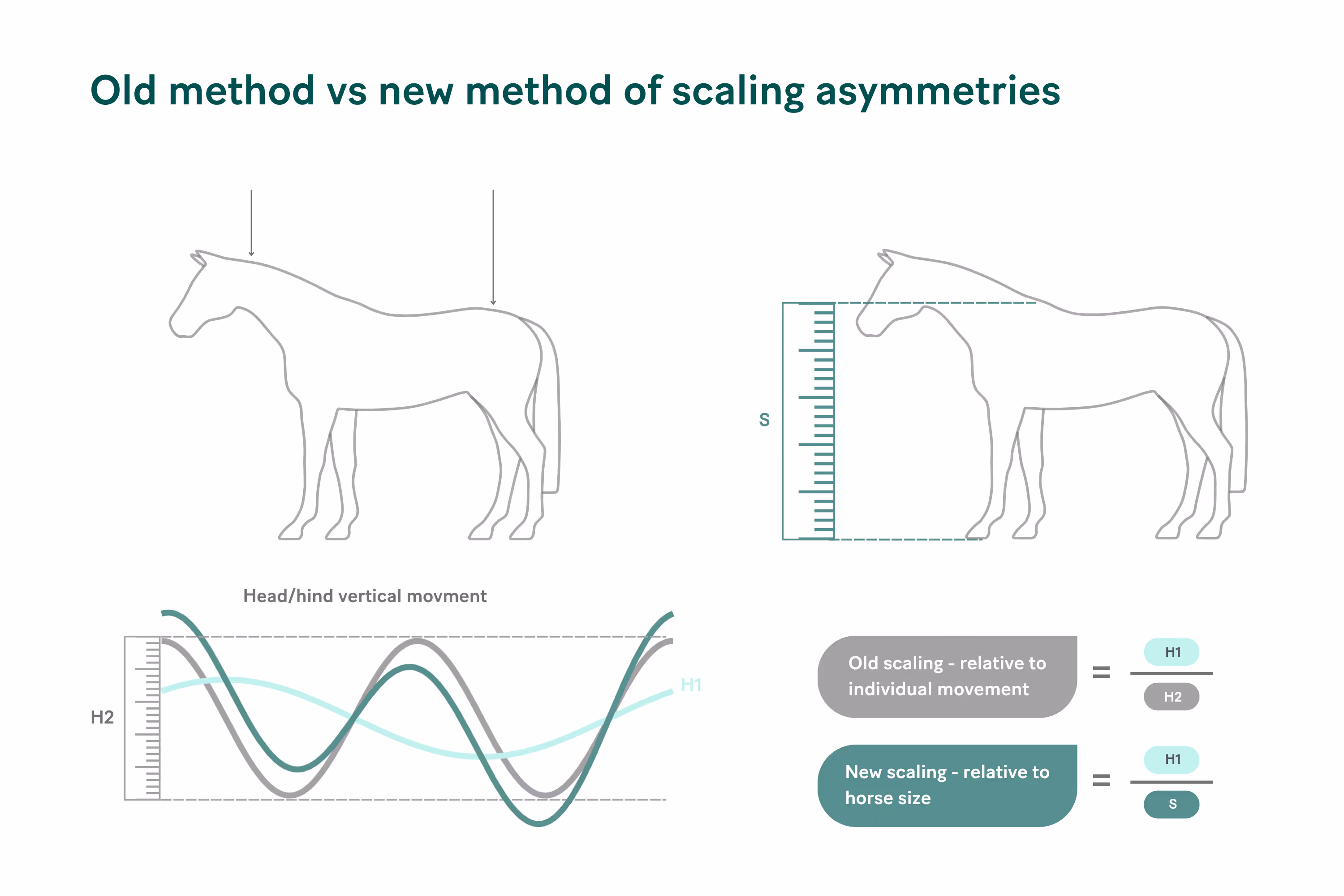 The new scaling method developed by Sleip (Fig.2) uses the actual anatomical size of the horse to rescale the asymmetry data to provide a measurement that better correlates with the degree of observed asymmetry.