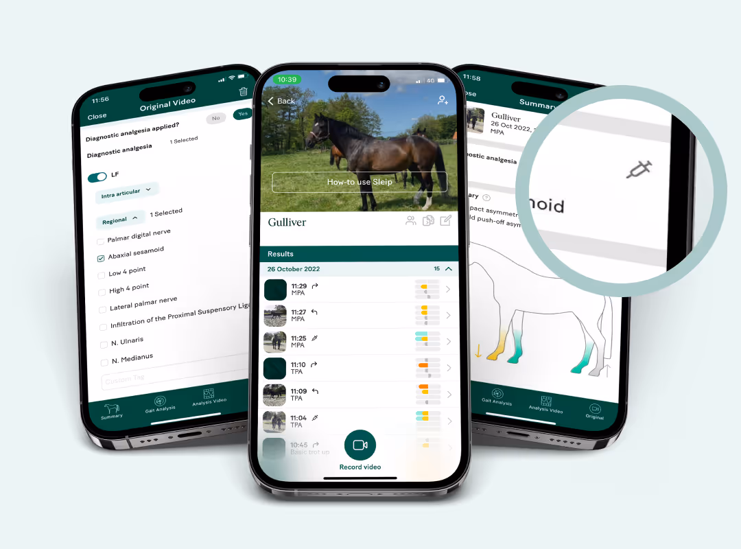 "The menu covers most diagnostic analgesia, categorised by limb and type of block, i.e. intra-articular or regional. A separate button is provided for diagnostic analgesia of the axial skeleton. This feature provides a shortcut to documentation and makes it easier to compare recordings before and after different blocks”, explains Aagje Hardeman, DVM, PhD and Customer Success Manager at Sleip